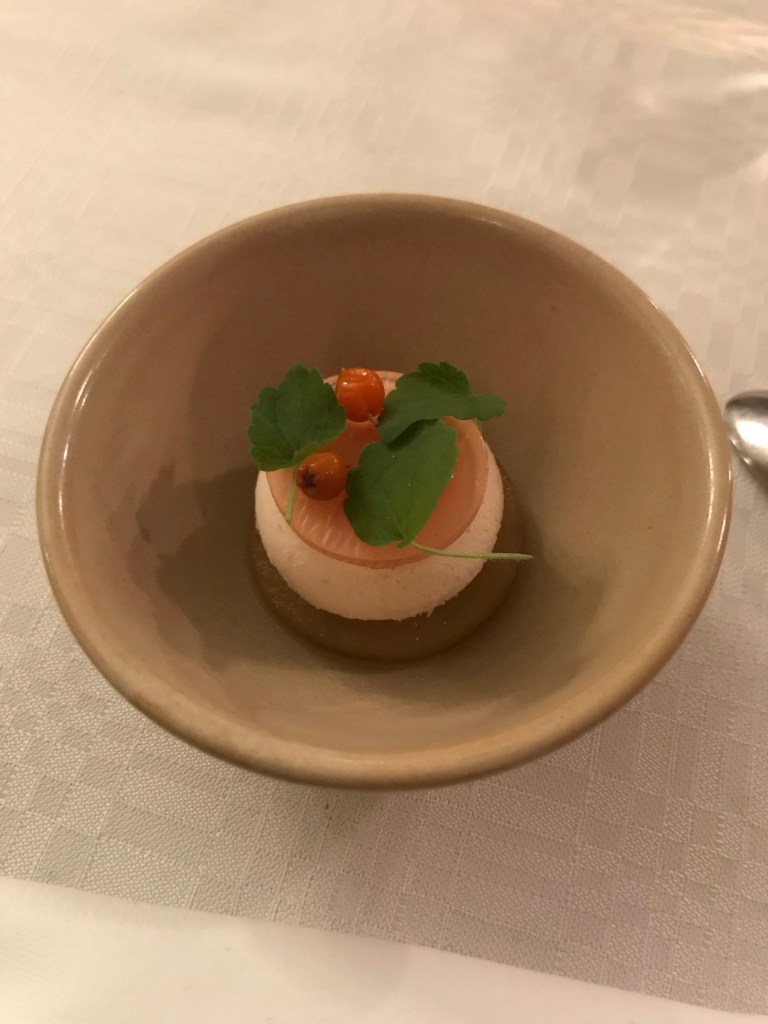 , keskusta oli jotain sorbettia ja pohja oli jotain tosi hyvää vähän niinkuin kaneliomenaa.