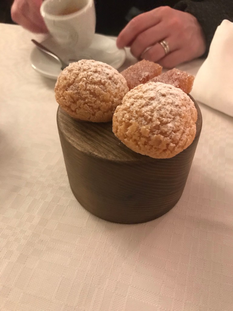 Jälkiruuan jälkiruoka. Tyrni marmeladia ja tuulihattuja teen kera. Tuulihatut sulivat suussa ja marmeladit myös! 10/10